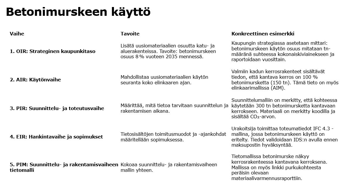 esimerkiksi betonimurske, materiaali, joka muuten jäisi jätteeksi.
