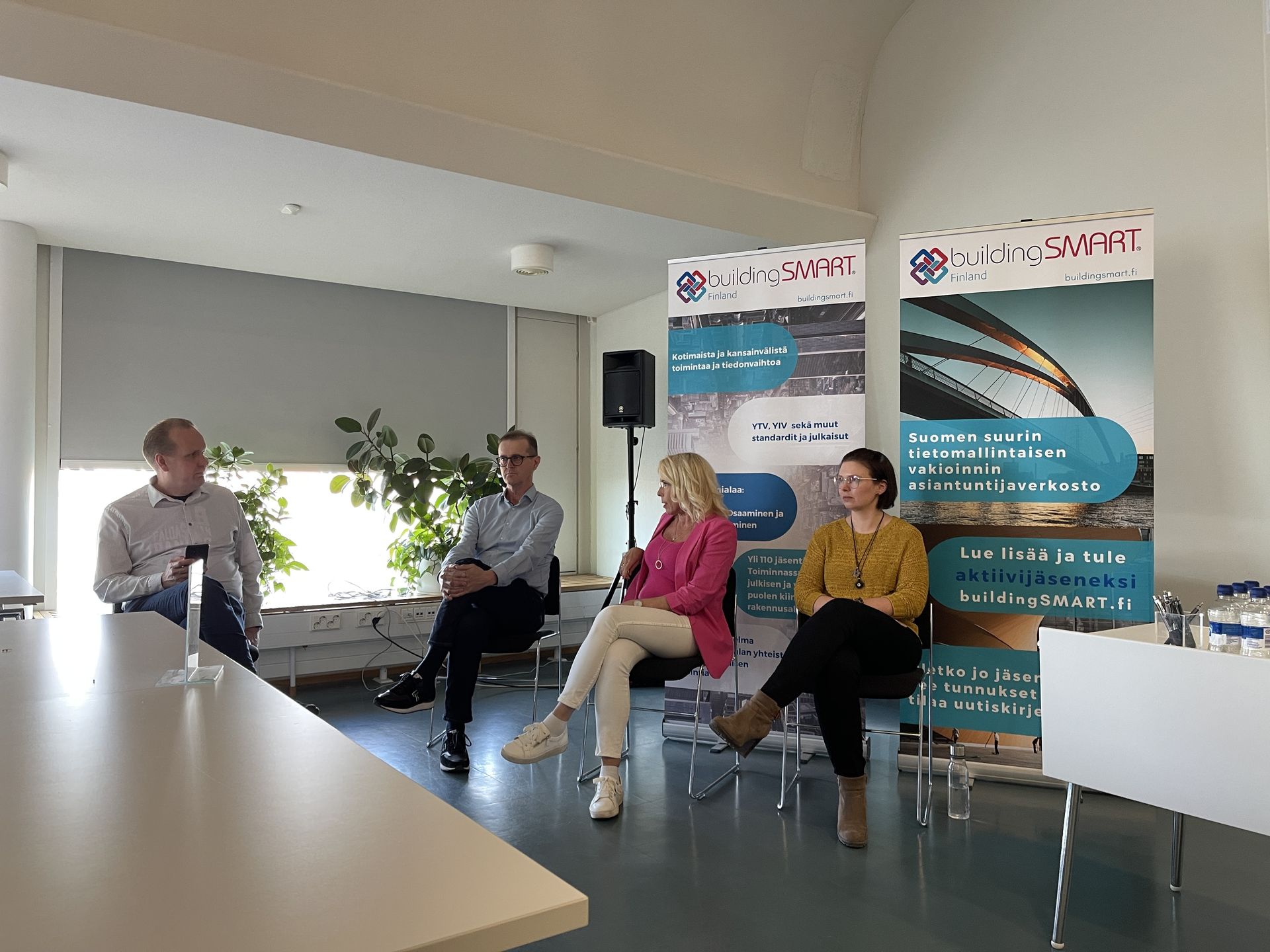 Paneelissa käytiin monipuolista ja hyvää keskustelua rakentamisen nykytilasta ja siitä, mihin muutoksiin alan on varauduttava. Kaikki panelistit yhtyivät siihen, että tuotanto ja prosessit ovat alalla sirpaloituneet ja siiloutunut, ja tarvitsemme yhtenäisyyttä alalle. Lisäksi tiedonkulku on nykyisessä mallissa esteellistä. Tulevaisuuden muutoksissa nousivat esille uusi rakennuslaki, tiedolla johtaminen, digitalisaatio, oppivat järjestelmät sekä vihreä siirtymä.
