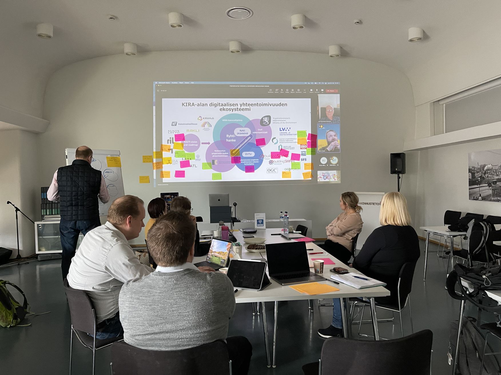 Työpaja jakautui neljään osioon. Ensimmäiseksi Annina Lehikoinen (Rakennustietomalli Oy) piti alustuksen RYTV-hankeohjelmasta ja sen tavoitteista, jonka jälkeen Tommi Arola (Rakennustietosäätiö) avasi muita rakennetun ympäristön ja tietomallintamisen vakioinnin kehityshankkeita. Alustusten jälkeen Päätoimikunnan jäsenet toteuttivat harrjoituksen, jonka tavoitteena oli selventää ja täydentää KIRA-alan digitaalisen yhteentoimivuuden ekosysteemi-kuvaa.