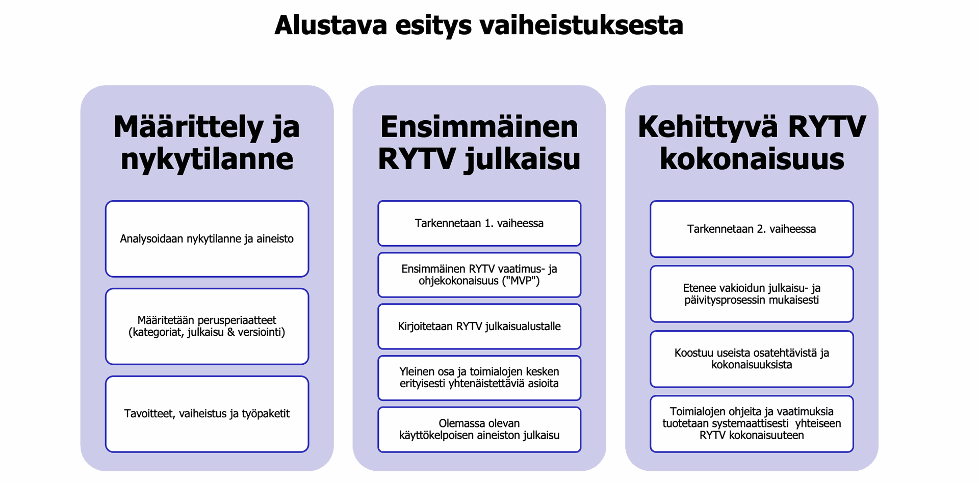 Alustava esitys vaiheistuksesta sekä ensimmäinen vaihe
