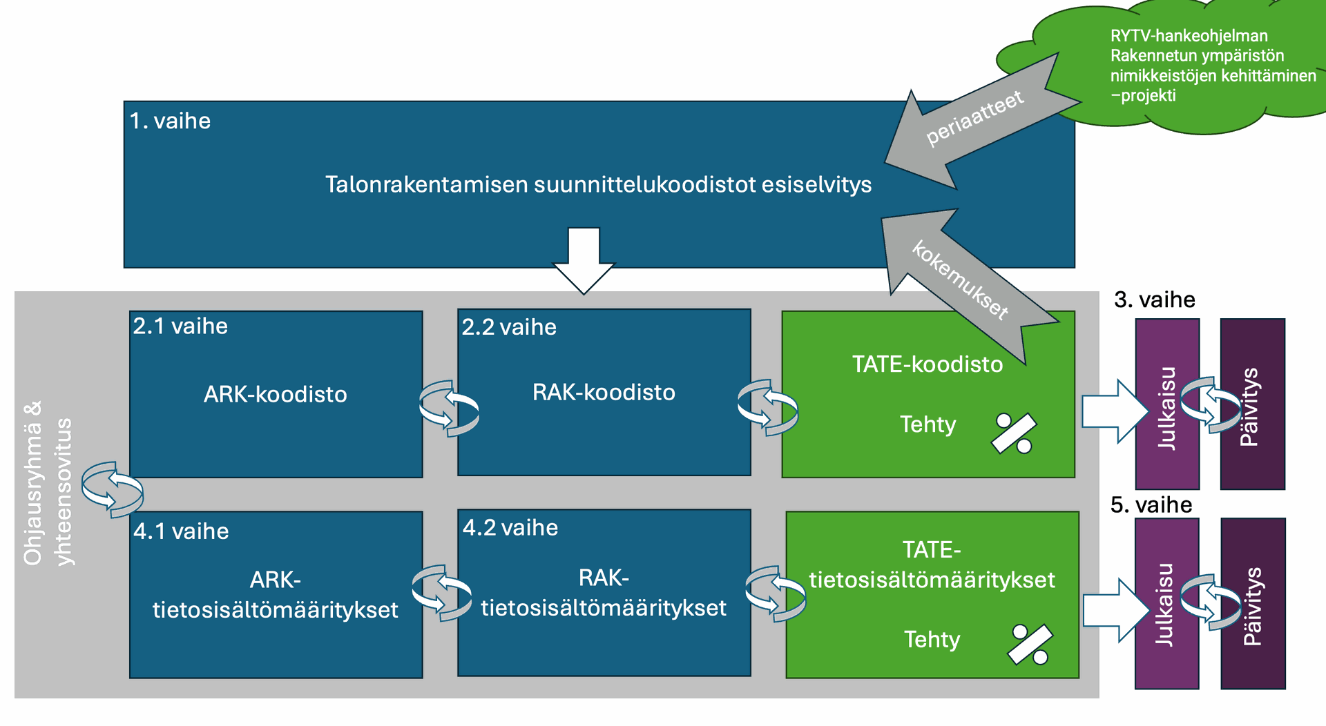 TATE-koodiston ja siihen liittyvien tietosisältömääritelmiä on jo tehty. Meidän on kuitenkin tärkeää huomioida, että tässä vaiheessa, kun teemme projektiehdotusta, on syytä tarkastella jo tehtyä työtä siltä varalta, että määrittelyt eivät aina välttämättä ole ristiriidattomia.