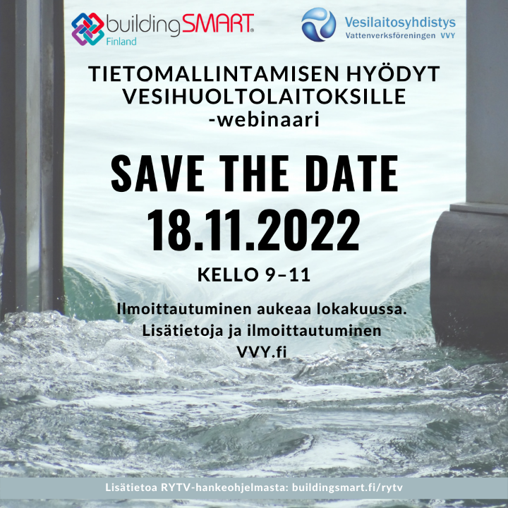 Vesihuoltolaitokset ovat tietomallintamisen vakioinnissa jälkijunassa, ja esimerkiksi sanastojen vakiointi on vesihuollon kentällä melko olematonta. Digitalisaatio ja vakiointi tulevat olemaan erottamaton osa koko tulevaisuuden infra-alan kehitystä eivätkä vesihuoltolaitokset voi jäädä tämän muutoksen ulkopuolelle. Jotta voimme mahdollistaa kattavan ja onnistuneen vakioinnin, tarvitsemme laajaa yhteistyötä vesihuoltolaitosten kesken sekä laajaa ymmärrystä tietomallintamisesta. VVY:n ja buildingSMART Finlandin järjestämässä webinaarissa keskitytään tietomallintamiseen ja sen tuomiin hyötyihin juurikin vesihuoltolaitosten näkökulmasta.