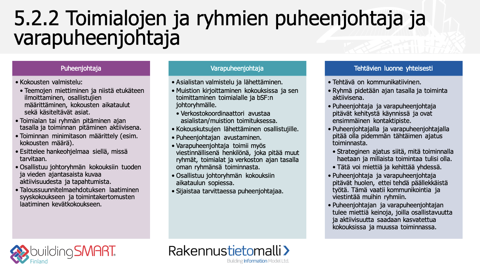 Puheenjohtajan tehtävät:
