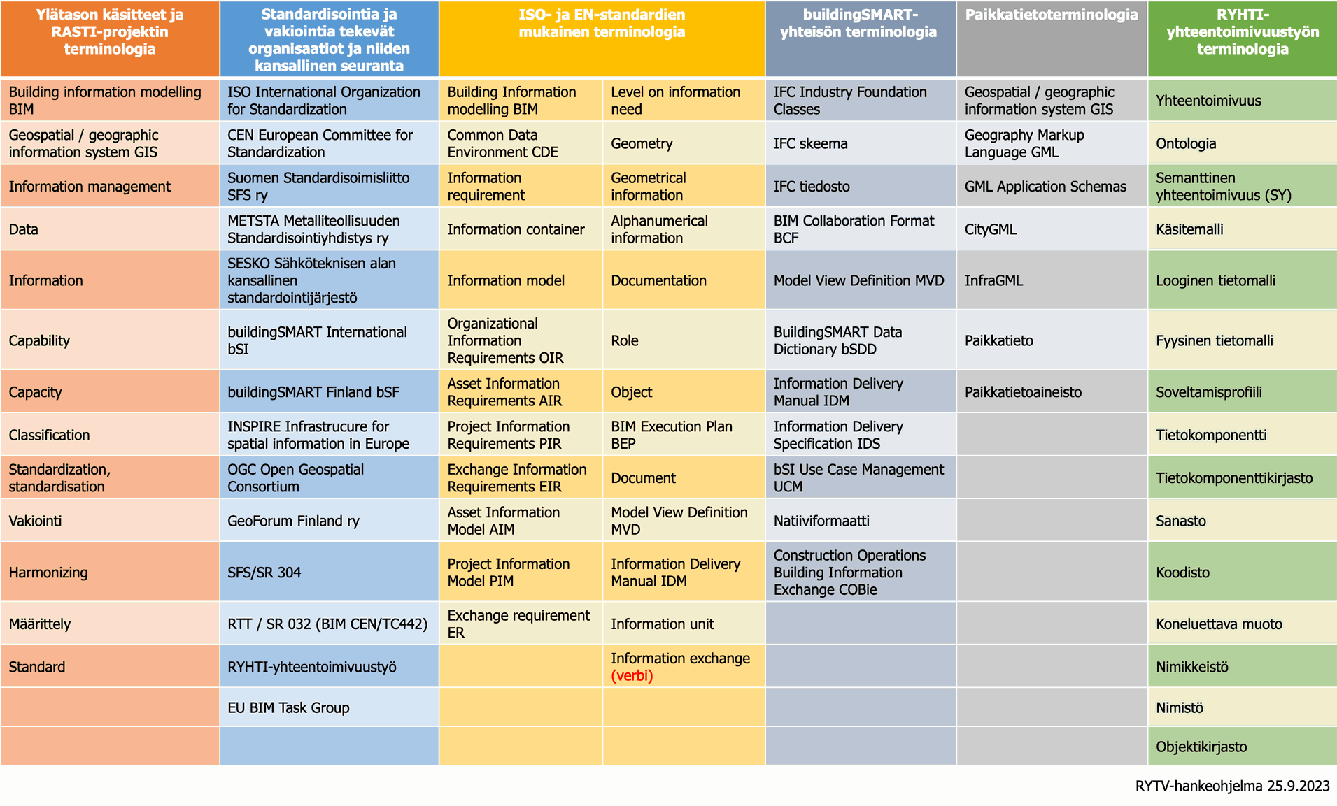 - Ylätason käsitteet ja RASTI-projektin terminologia (BIM ja GIS toimialat)