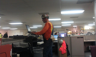 Oli aikamoinen shokki astua työmaatoimistoon sisälle. Luulin, että homma tehdään jossain isossa neukkarissa (big room). Oven takana oli arviolta 500m2 toimistoa, jossa 20-30 henkeä oli tietokoneiden takana töissä. Ei mikään ihan perustyömaakoppi. Samassa avokonttoritilassa olivat arkkitehdit, rakentajat aliurakoitsijoineen sekä erikoissuunnittelijat. Jos arkkitehdillä oli joku asia ratkaistavana, ei tarvinnut lähetellä sähköposteja, riitti että meni juttelemaan ko. alueen suunnittelijalle.