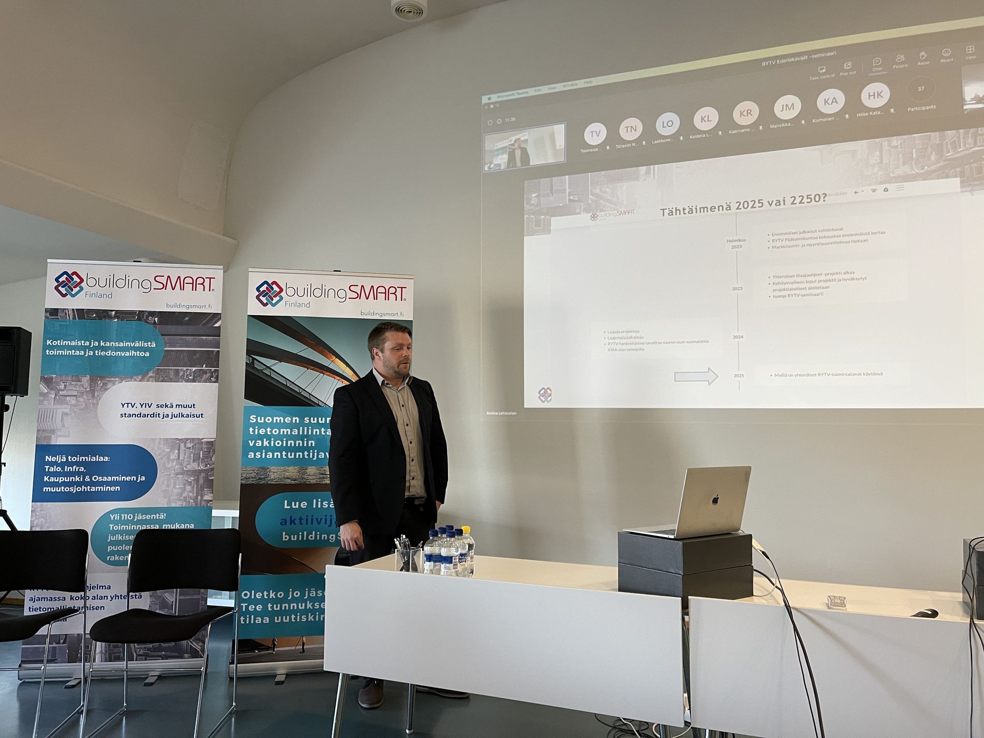 Tilaisuus alkoi Annina Lehikoisen (buildingSMART Finland) tervetulotoivotuksella sekä katsauksella RYTV-hankeohjelman ensimmäiseen vuoteen. Lyhyessä aloituspuheenvuorossa Lehikoinen painotti yhteistyön ja edelläkävijyyden tärkeyttä, jotta rakennetun ympäristön tulevaisuus on tuottoisa ja kestävä.