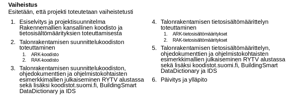 -projektialoitetta ja esityksessä tuotiin esille ehdotettu vaiheistus projektin osalta. Vaiheistus esitetty kuvissa 4. ja 5.
