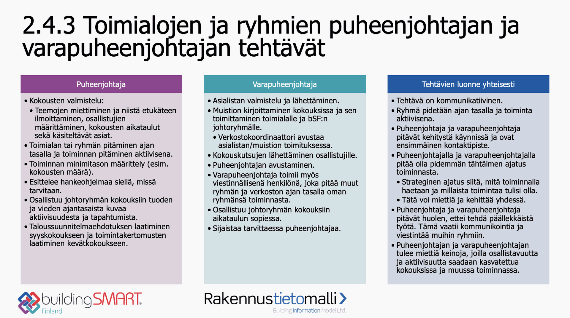 Käy lukemassa tarkat kuvaukset toimialan ja ryhmän puheenjohtajan tehtävistä Näin toimimme -dokumentista.